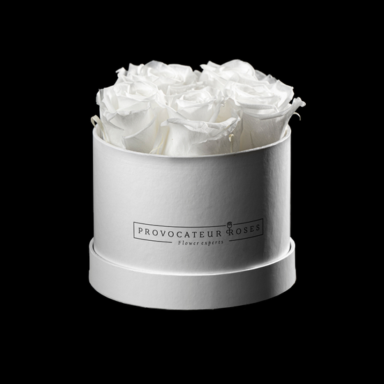 En esta edición, la caja blanca crea un juego de luz total con las rosas blancas que contiene. El resultado: una pieza etérea y delicada, que transforma cualquier rincón en un espacio sereno. Aurum Lumière es la versión más luminosa del mismo gesto: delicado, sincero, eterno.