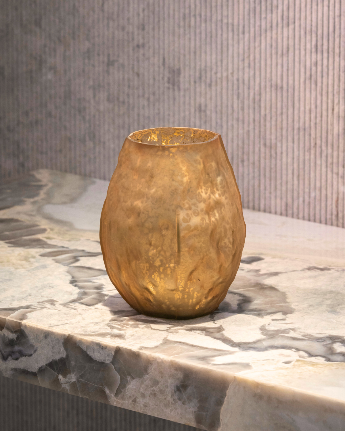 Ideal para espacios cálidos y sofisticados, es perfecto tanto para flores claras y delicadas como para brillar por sí solo en una composición artística sobre mármol, madera o cristal.